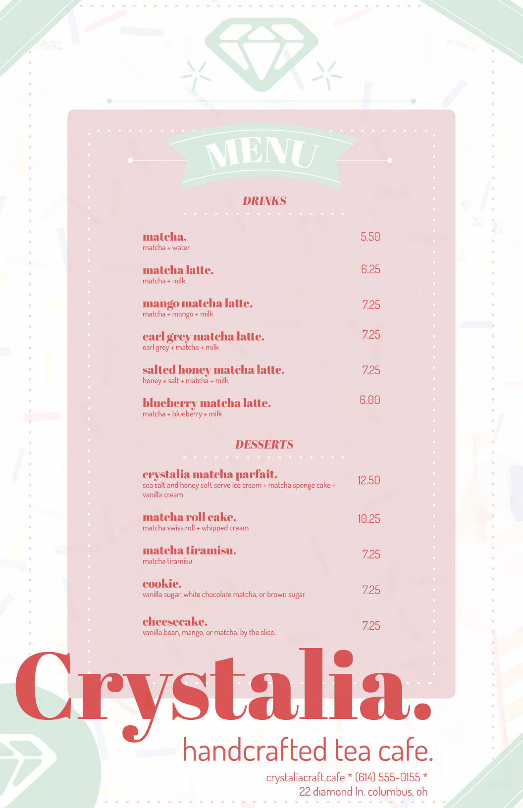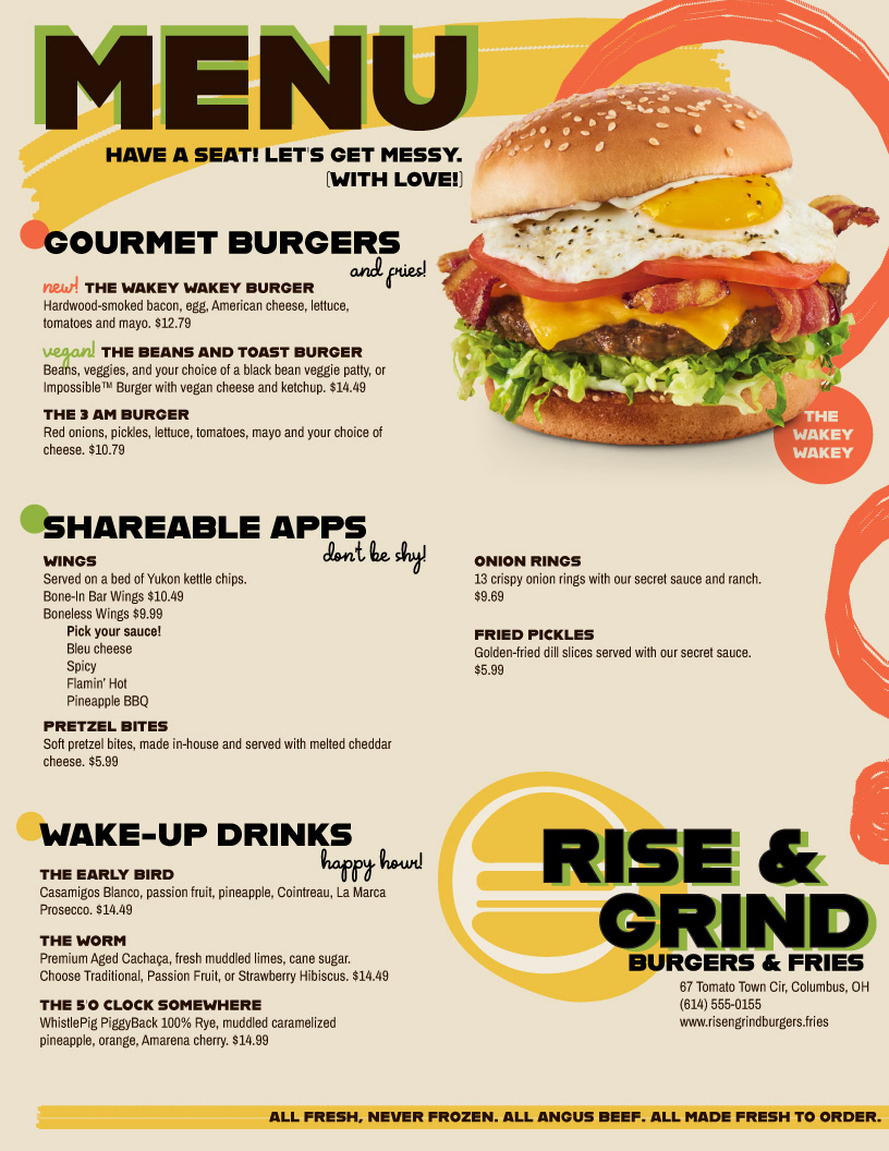 Designed completely in Adobe Illustrator. These are not real places or menus, though I wish they were. Bun-Bun Bakery, however, comes from a Visual Development project of mine.