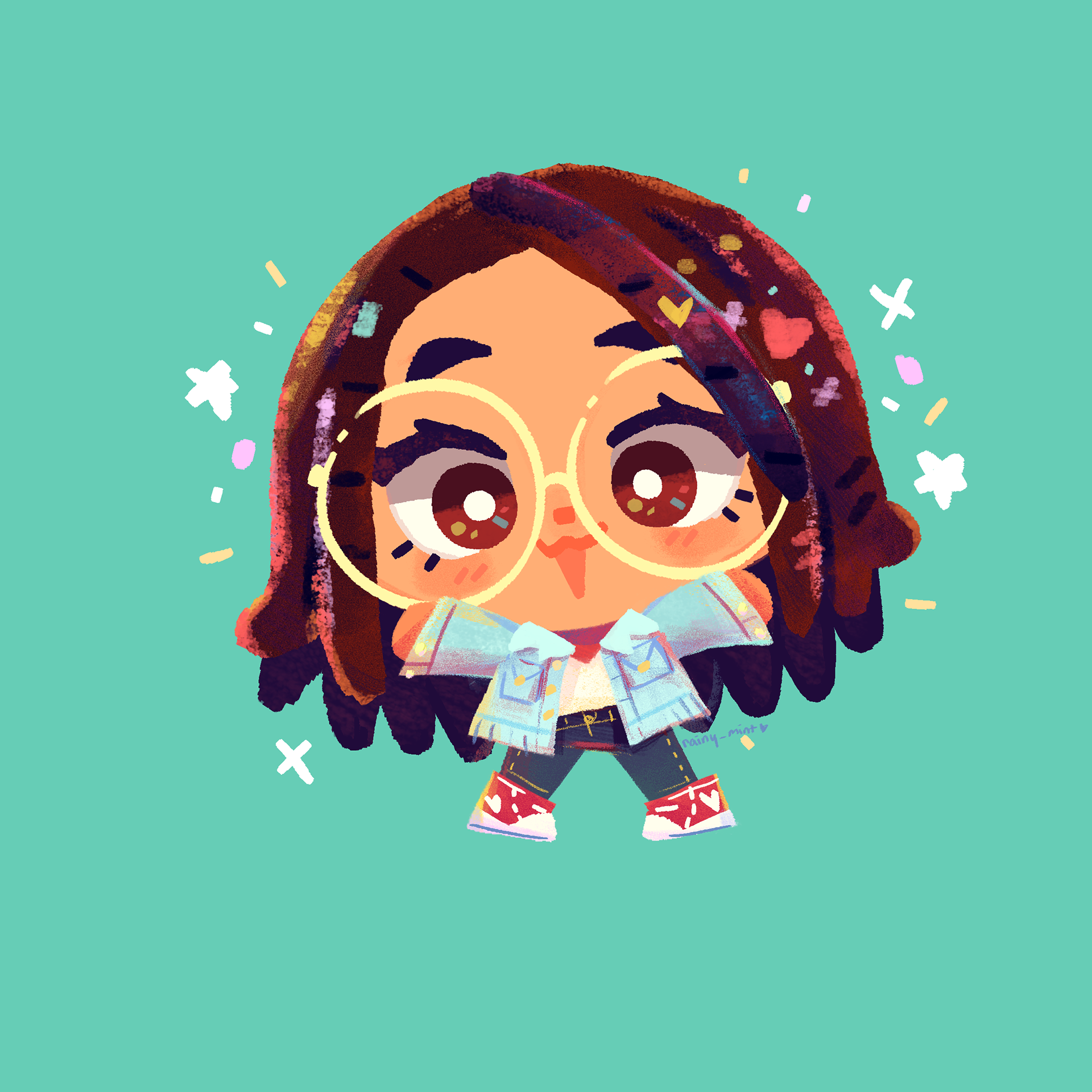 Artwork of my own original characters, and fanart in my various "chibi" styles. Some pieces shown are also used in merchandise in my shop, including prints, charms, and stickers.